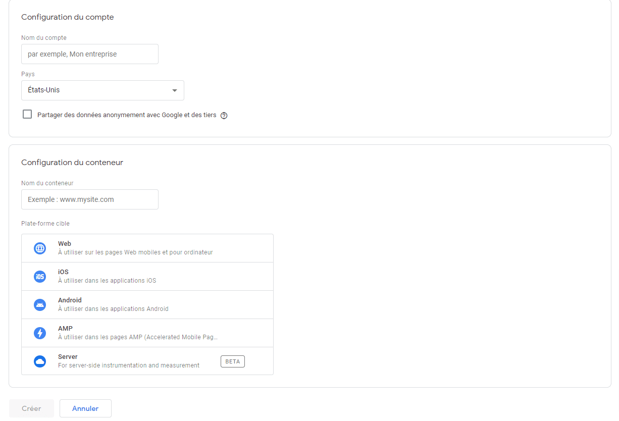 1. Comment créer un compte et un conteneur sur Google Tag Manager ?
